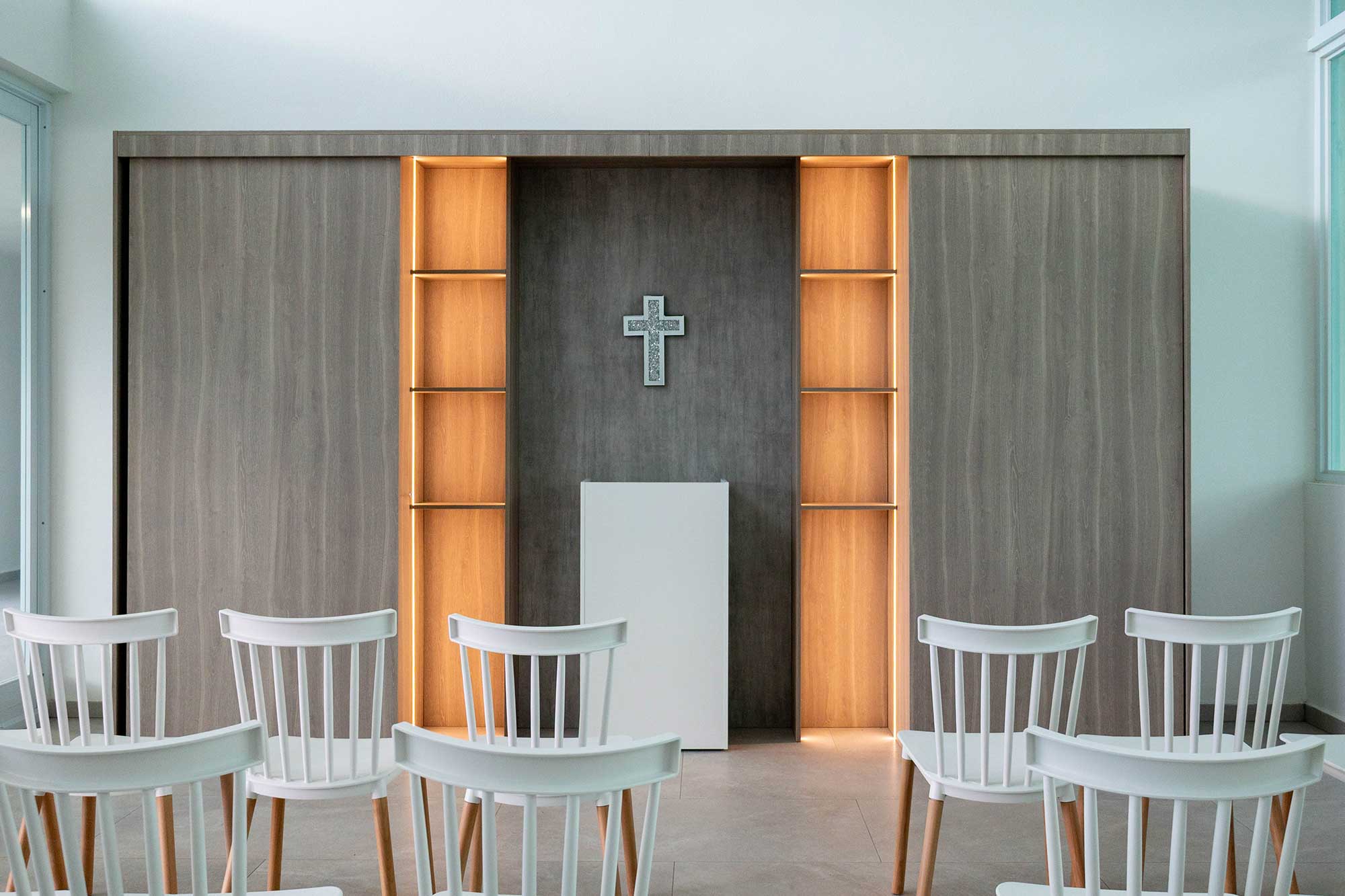 The multipurpose chapel at Montehiedra Home Reserve is a serene haven designed to cater to the diverse spiritual needs of our residents. With its elegant architecture and tranquil ambiance, the chapel serves as a place for worship, reflection, and community gatherings. The chapel's flexible layout allows for customization, ensuring it can adapt to different activities while offering a sanctuary for spiritual nourishment and connection.